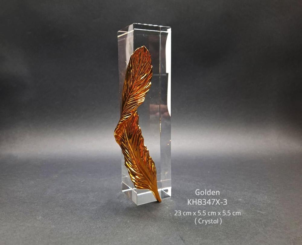 لأن بعض الإنجازات تستحق أن تُخلّد برمز من الفن تم تصميم هذا التروفي ليجمع بين نقاء الكريستال وأناقة الريشة المعدنية لتبدو وكأنها تكتب قصة نجاح جديدة.