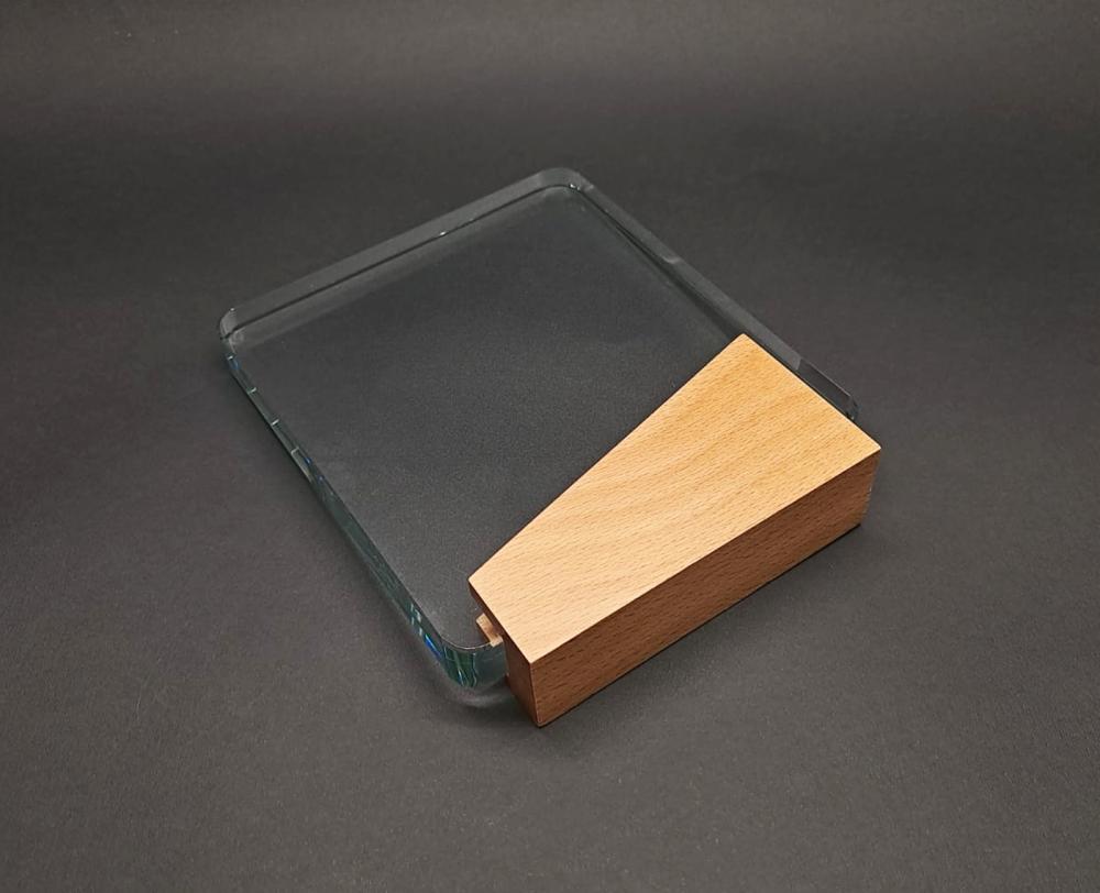 ✨درع زجاج مودرن بقاعدة خشبية مائلة