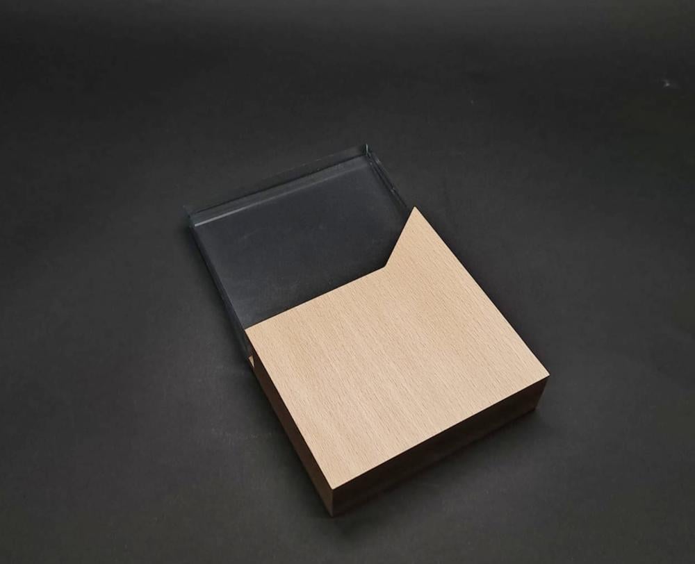✨درع زجاج مودرن بقاعدة خشبية بزاوية V