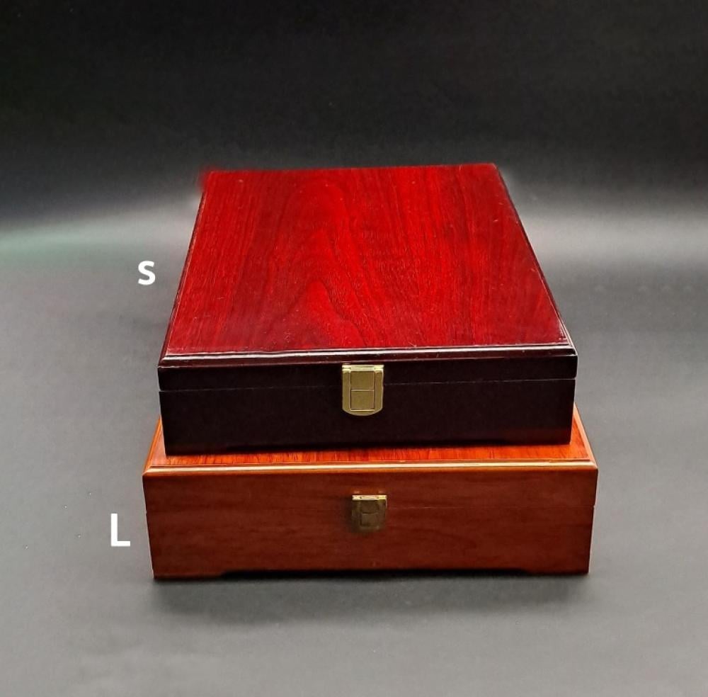 • الدرع الصغير (28 × 21.5 × 5.5 سم): علبة خشبية باللون الأحمر (مقاس S)
