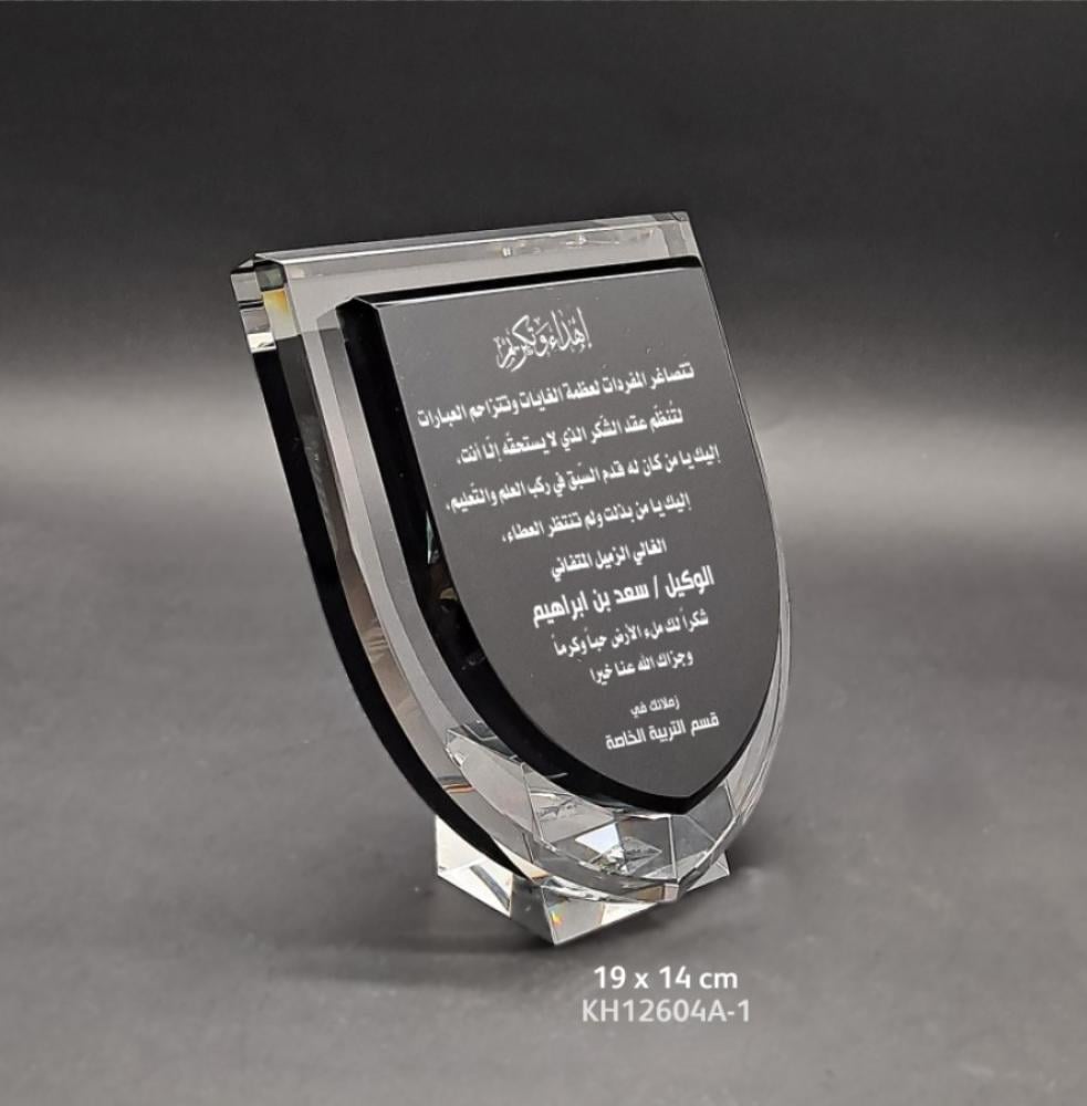 سواء في حفلات التقاعد، أو تكريم موظف متميز، أو جوائز الأداء السنوي، فإن هذا الدرع الكريستالي المميز يضمن لك تميزًا لا يُنسى.