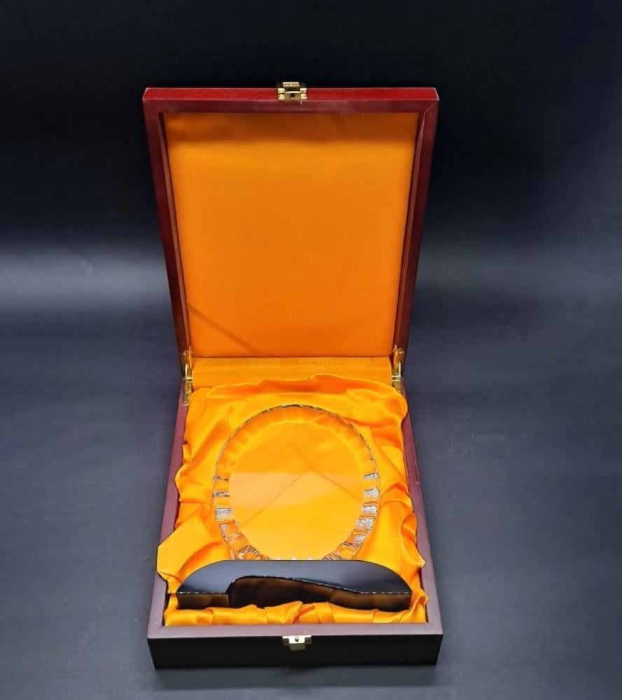 احصل على قطعة فريدة تعكس الاحتراف والتقدير مع درع كريستالي بيضوي التصميم، يجمع بين الانحناء الأنيق والبساطة الجذابة.