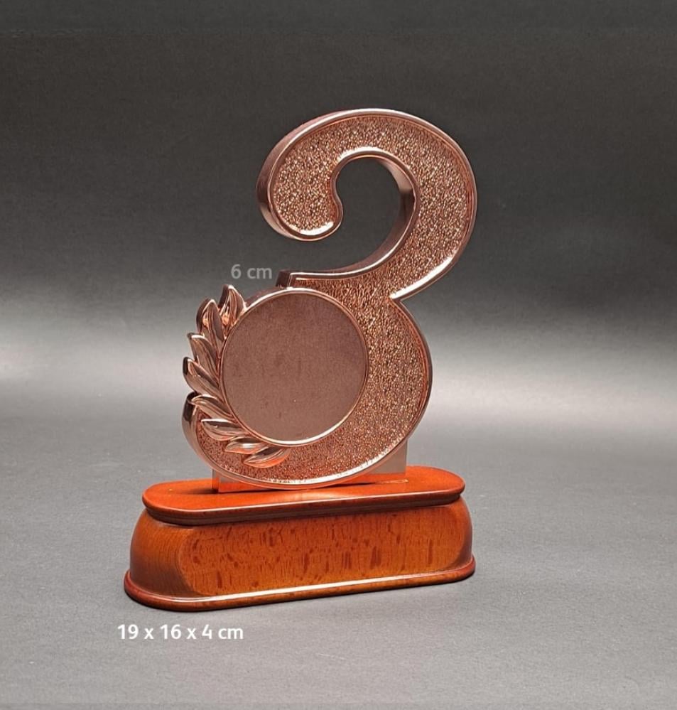 تميّز بتكريم الفائزين بأناقة مع هذه المجسمات الراقية المصنوعة من المعدن اللامع، والمثبّتة على قاعدة خشبية مصقولة تعكس الفخامة. تصميم أنيق بأرقام بارزة لكل مركز، مع مساحة مخصصة للطباعة (شعار أو اسم الفعالية)، لتمنح كل متسابق لحظة فخر لا تُنسى.