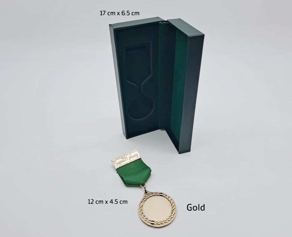 ويقدم داخل علبة أنيقة مبطنة لضمان الحفاظ على الوسام بأفضل شكل عند التقديم.