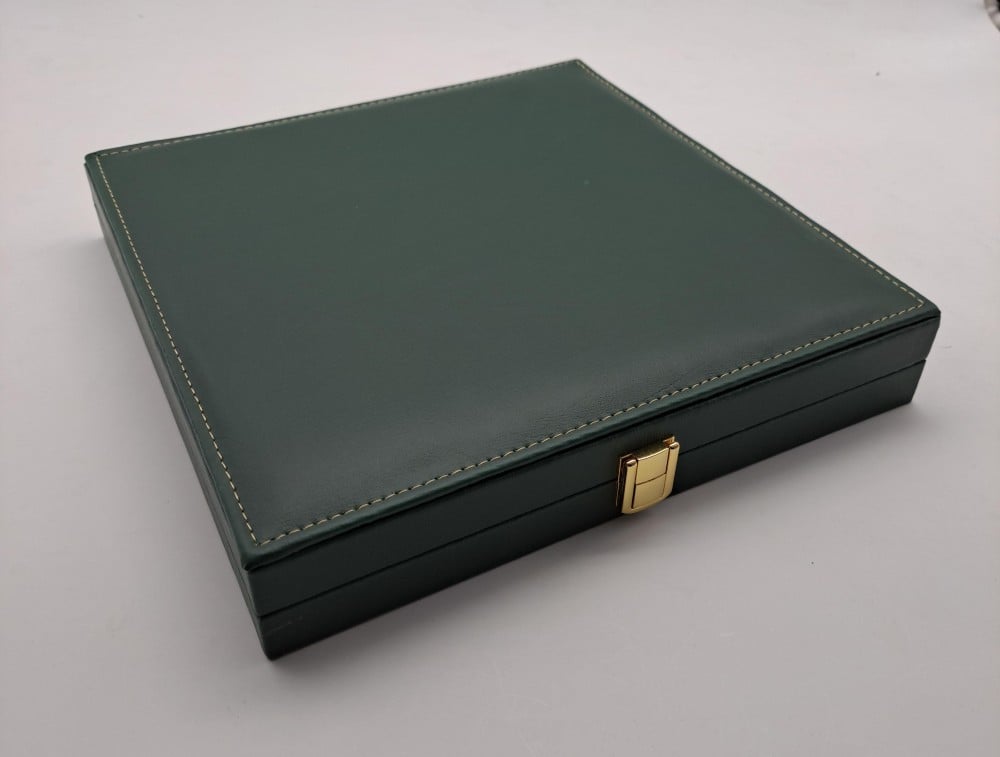 - قاعدة العرض: علبة جلد إيطالي فاخرة