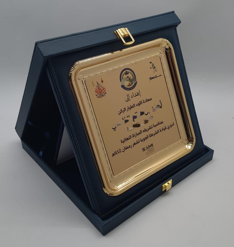 🏆 درع صحن معدني مستطيل – جلد إيطالي فاخر