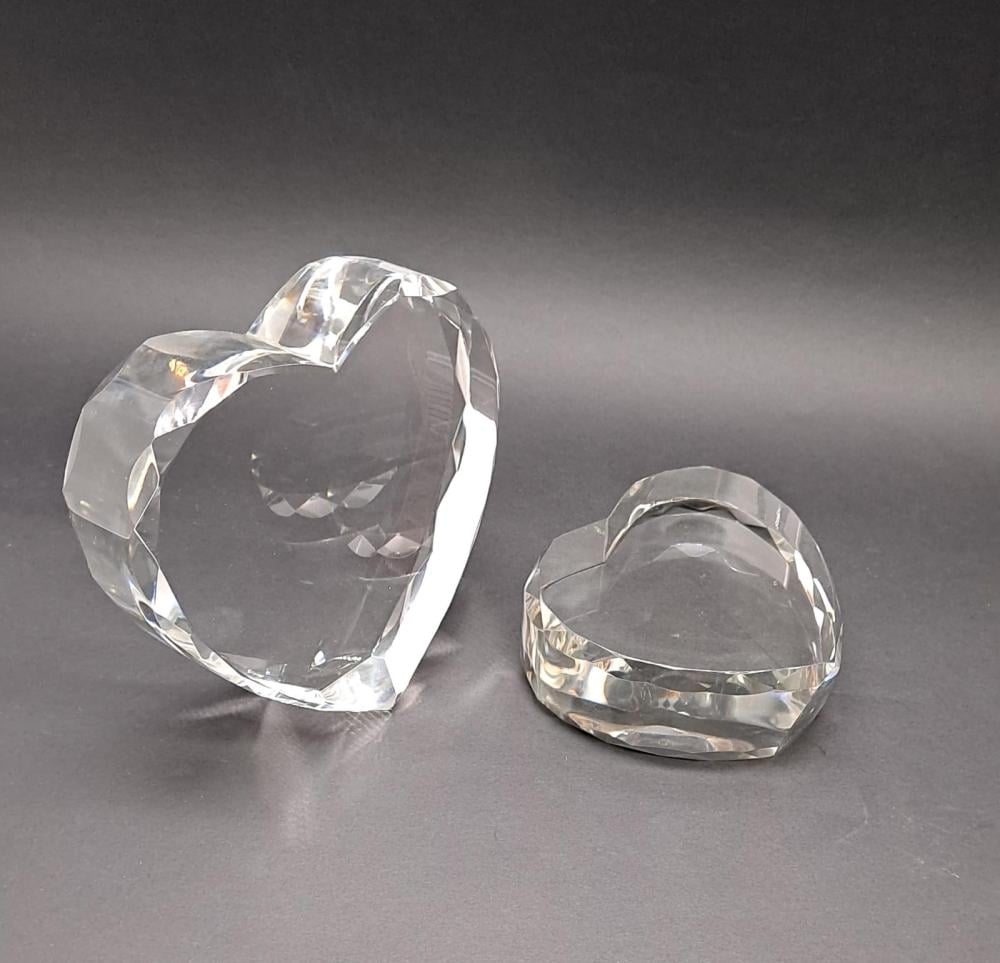 مجسم قلب كريستالي سميك بتصميم فاخر يعكس الوضوح والنقاء بلمسة فنية فريدة. تتميز بحواف مشطوفة تعكس الضوء بأناقة، مما يجعله قطعة مثالية للإهداء في المناسبات الخاصة.