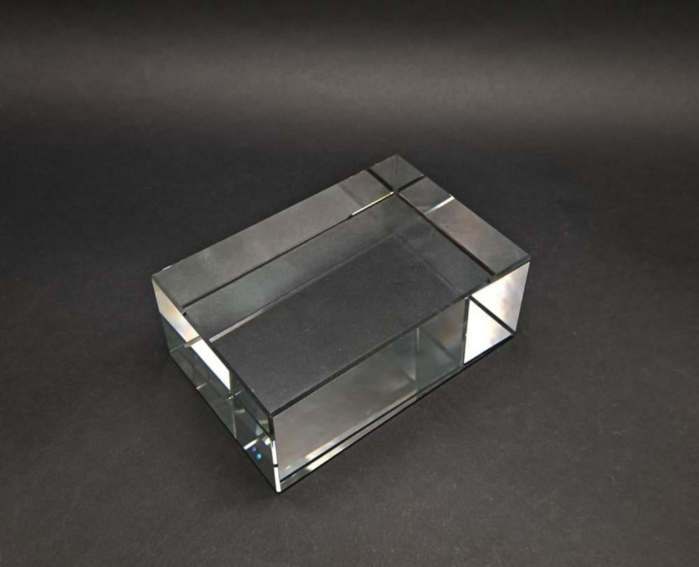 • قطعة فنية هندسية مصنوعة من الكريستال النقي بلمسة فاخرة، تأتي على شكل مستطيل مصمت.